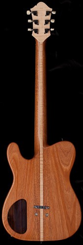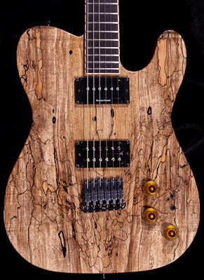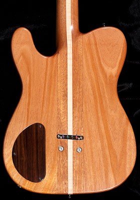 Mahogany with 1/4" spalted maple drop top. Dark walnut trim. Indian rosewood control cavity cover. |