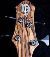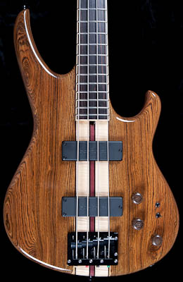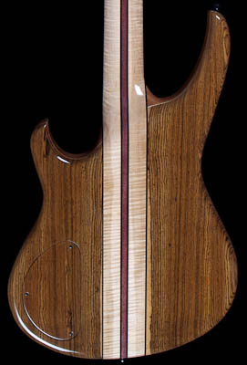 5 piece; bocote, maple, mahogany, maple, bocote. Neck framed in wenge. Tigerwood knobs. Bocote control cavity cover. |