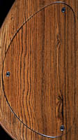 Rosewood front, wenge back. Mother of pearl and abalone inlayed logo (front). |